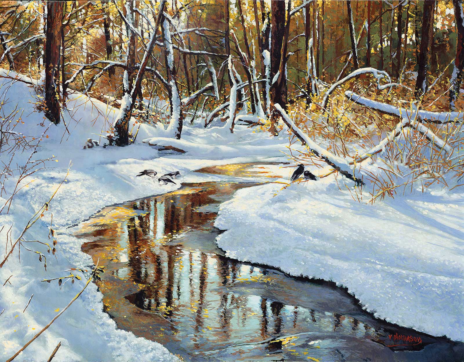 Victor Mordasov, Golden Stream of Winter, oil on canvas, 30 x 40 in.