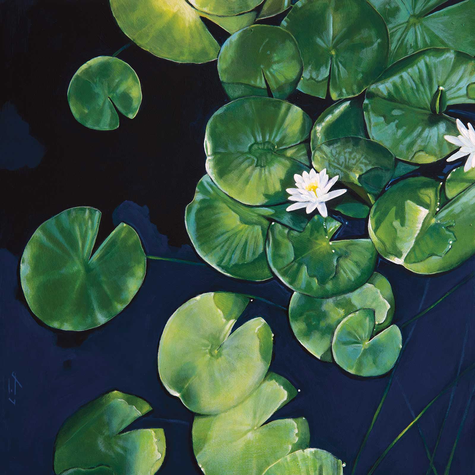 Michael T. Davis’ 12-by-12-inch show piece, Hooded Merganser, 2 Snails, and Ginger, features a whimsical still life example painted with great detail and impeccable shadow work. Davis often starts with finding items at a local thrift store for his composition ideas. “Still life artists slowly become small time hoarders, and any time spent in thrift shops or antique stores is on par with any Indiana Jones adventure,” says Davis. “Things are stacked and arranged in perfect disorder. It’s then that something will catch my eye and become the perfect subject for the story running through my head. It’s like putting a puzzle together with objects and symbolism as the pieces.”