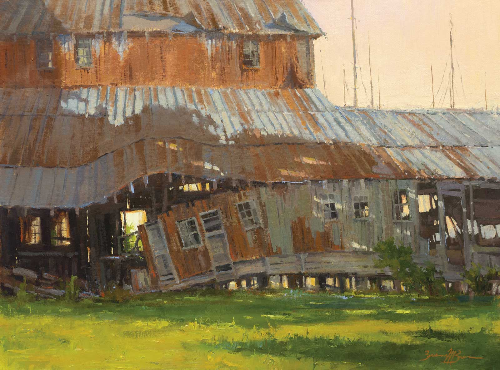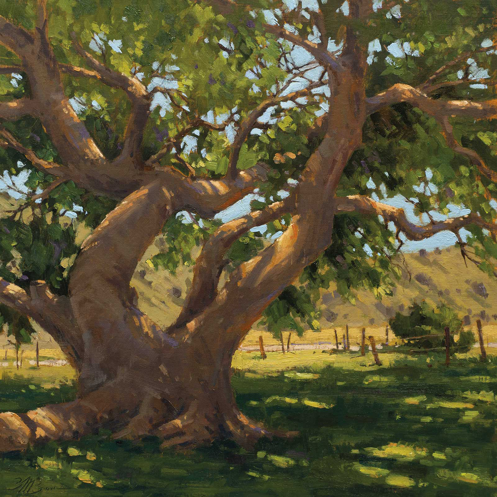 Brown’s subjects vary but she is especially inspired by nostalgic places like historic homes, timeworn buildings, and grand, ancient trees rich with character. “Painting these subjects gives me a sense of purpose and reflection, allowing me to honor their stories as they fade with time,” she shares. “Through plein air and being present, I can find a deeper connection and greater understanding of the emotions I wish to convey.”