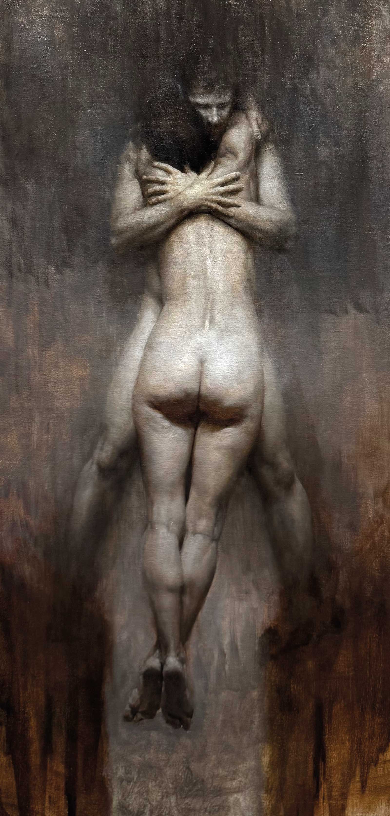 Early balances his transcendent figures against gravity, floating them above the earthly attraction that would submerge them in the thickening of weight, like water freezing in the white winter. His The Weight of Your Absence was inspired by the poem by Pablo Neruda from a little book gifted to him by a friend.