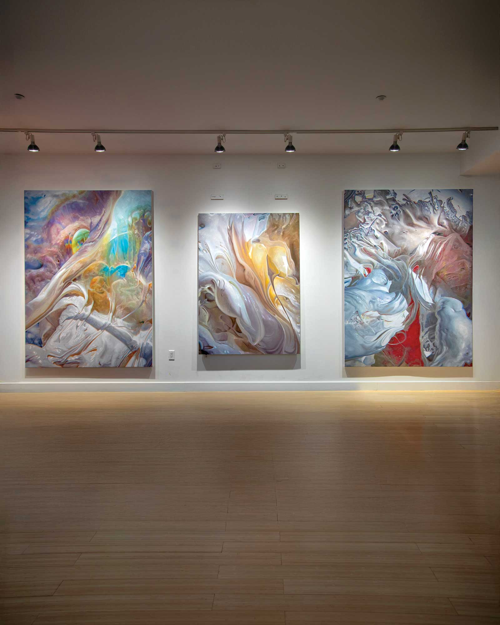 “They’re abstract moments that are painted realistically,” she says, “what’s interesting to me about them is that you’re not able to define them. What happens is when people look at them then they see things. It’s called pareidolia, where they see shapes they want to recognize, as if the brain wants to identify something there, and I think that’s fascinating, because I don’t see any of that, and nobody sees the same thing...I think it’s very psychological and my work has always been psychological, but this is a whole different level, just playing with different people’s interpretation of abstraction, when they want to see something. But I like the idea of them having to sit there and not know what they’re looking at, their brains struggling to identify it.” In the flow and state of connected consciousness, intuition is often our guide, and though a superficial excess of saccharine may be the lure that leads our response to these delicious paintings, the journey that led to them mixes the sweet and sugared blends of color and whipped cream with just a hint of a stripe of sadness.