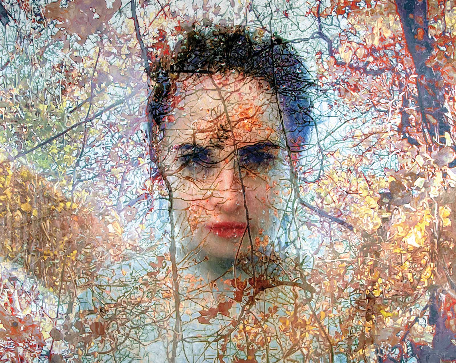 After her mother died, a grieving Monks was pulled away from herself as the recurring subject of her work—she was still fascinated by the division of inner and outer worlds implied by the glass enclosure of the shower cubicle, but found similar expression in a spiritualist’s separation of worlds before and after death. There was comfort in the ending of the ancient myth of Pandora, who released all the evils of the world when she lifted the lid of the jar she carried to mankind as a false gift from Zeus who sought to punish Prometheus, but hope and anticipation remained inside embodied as Elpis, and Monks painted the daemon as a spirit among the trees, an image of the veil between the worlds of life and death. Hope endured. “I realized at some point I was trying to bring her back,” said Monks, “she loved trees, she loved nature. I looked at it and I would think, ‘she would have loved this.’” The glass was gone, but the threshold remained.