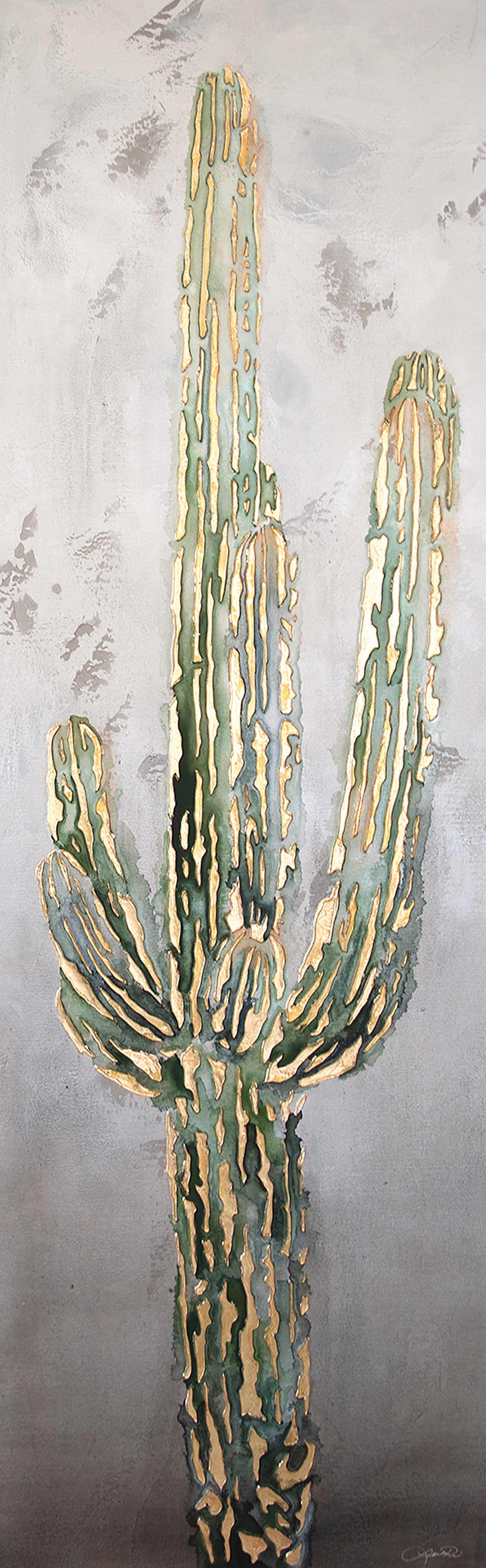 Leah Rei, Desert Sentinel, acrylic with gold leaf on canvas, 66 x 20 in.
