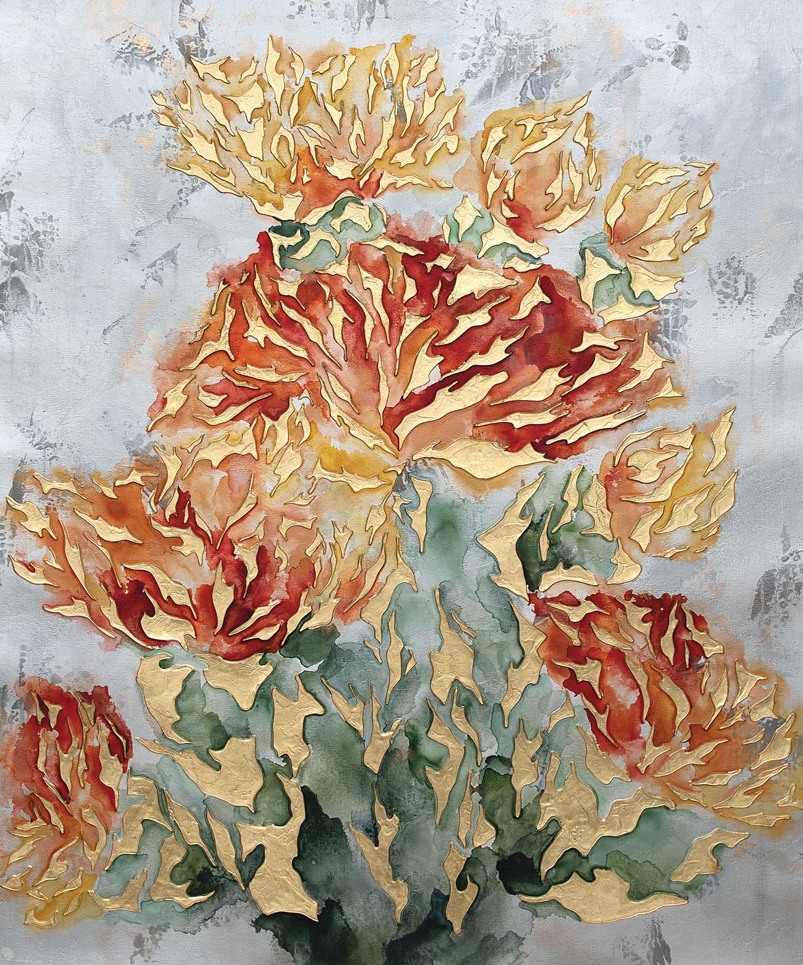 Leah Rei, Forever Blooming, acrylic with gold leaf on canvas, 50 x 40 in.