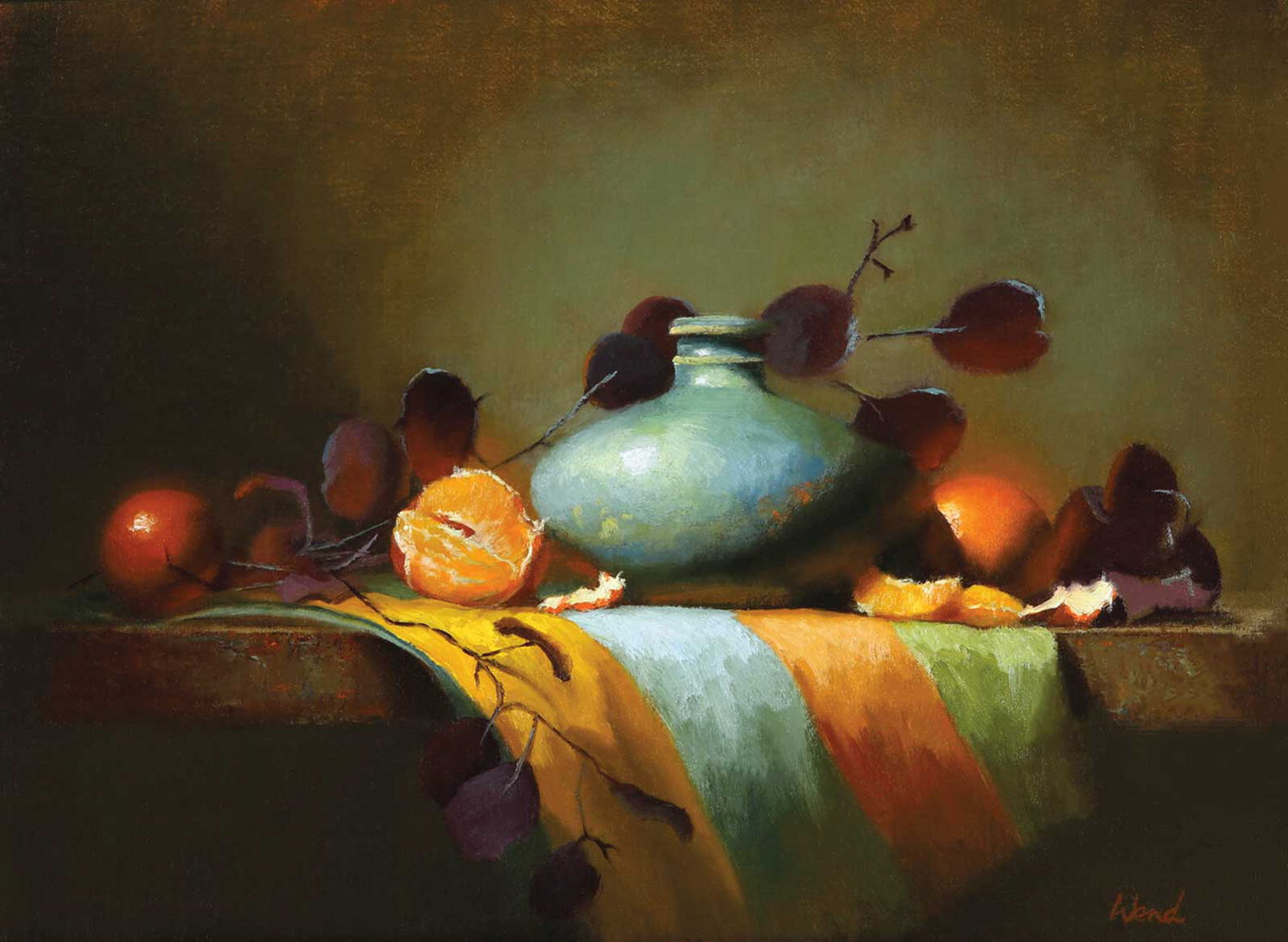 Wonderful, wow-inducing examples to watch for include M. Camille Day’s 16-by-20-inch oil, Roadside Beauty. This landscape is typical of what Day looks for while painting on site, which is the sometimes-overlooked beauty all around us in nature. “Although I didn’t paint this on location, I thoroughly studied the scene, took several photographs and drank in the beauty of this simple but elegant group of trees at the edge of a country road,” the artist explains. “When I painted it in my studio, I knew exactly what I wanted to say, how I felt when I was there and how I could convey that to the viewer through paint.”