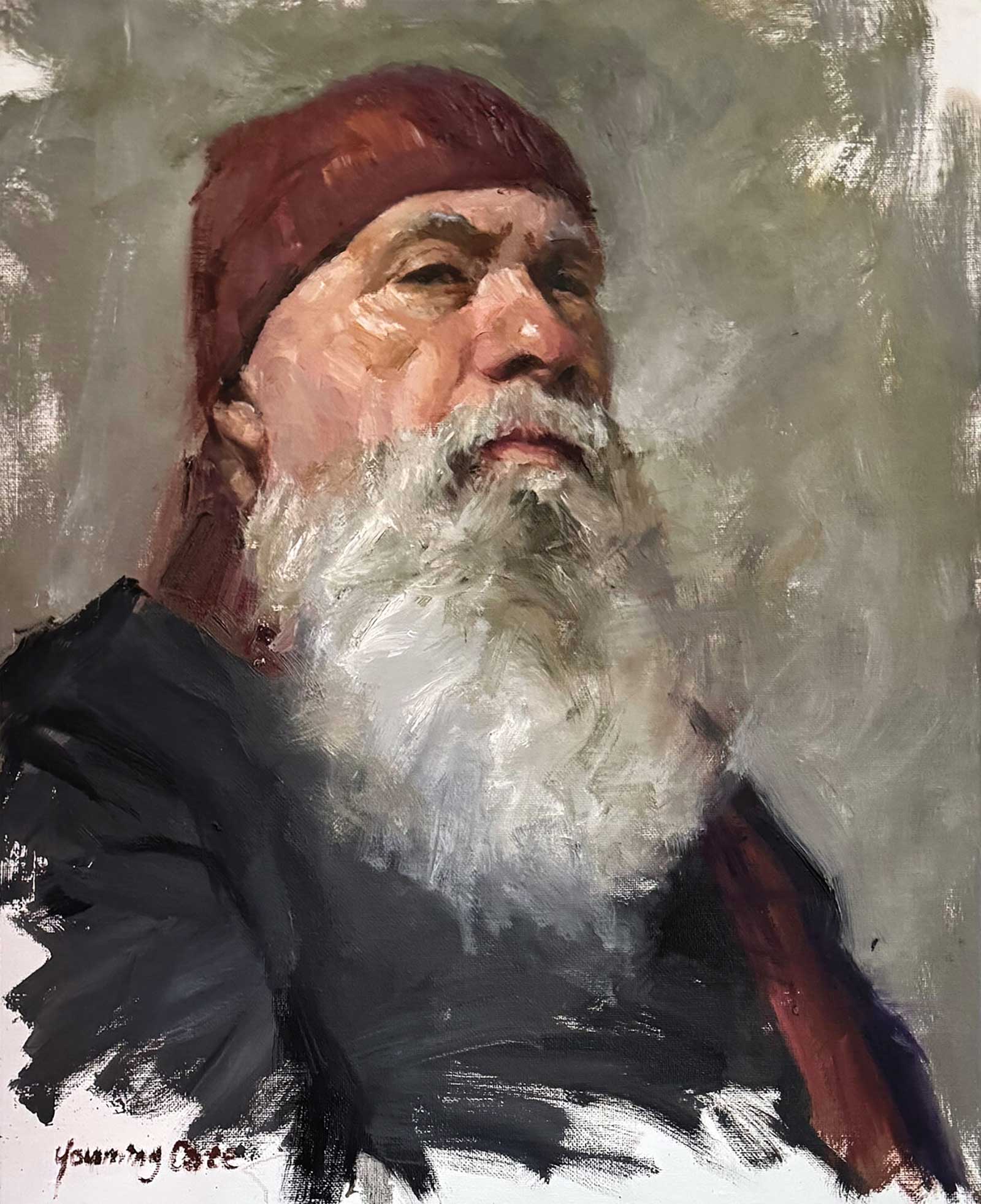 Youming Cate, The Crimson Sage, oil, 14 x 18 in.