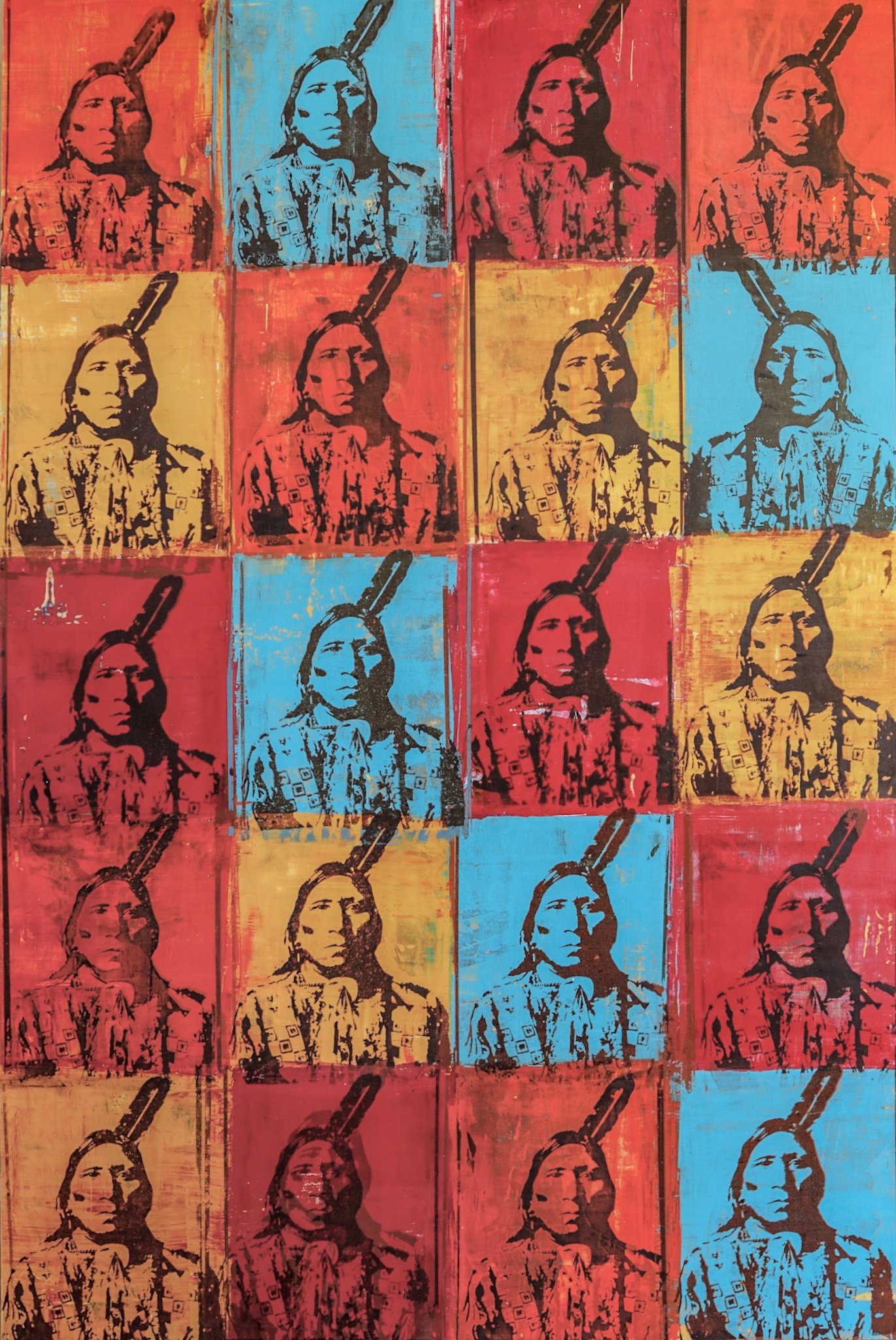 “When I came across photographic portraits of members of the Blackfoot tribe of Canada, I saw in their faces the innocence to their fate and way of life. Their strong poised faces revealed a personal magnificence that reminded me of my 100% Cherokee grandmother and inspired me to paint their portraits blooming with colorful character.” ~ Tom Gilleon