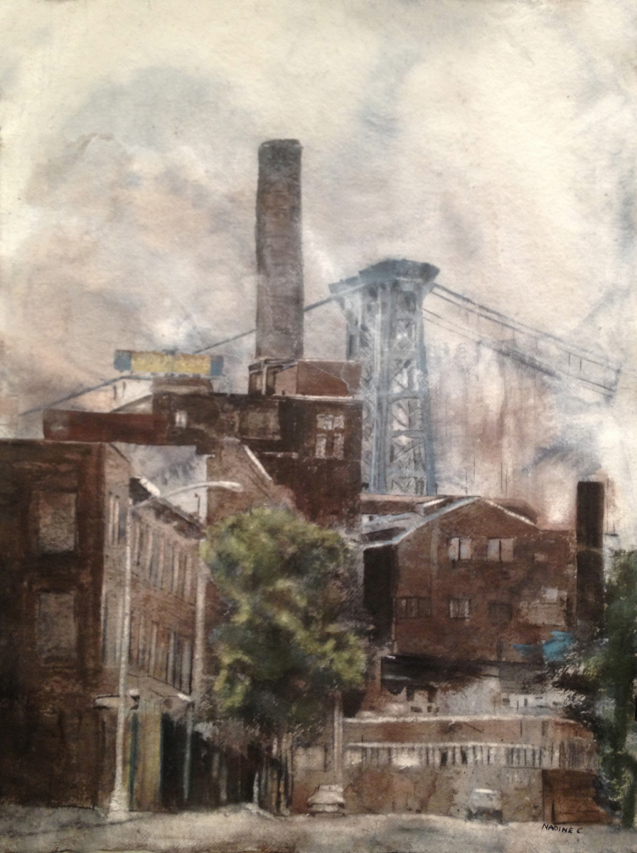 When I lived in NYC (31 years) I rode my bike throughout the 5 boroughs and more. This is from a photo in Brooklyn before gentrification started to happen along the East River on the Brooklyn side. This is an original painting on 140# Khadi handmade paper from India.