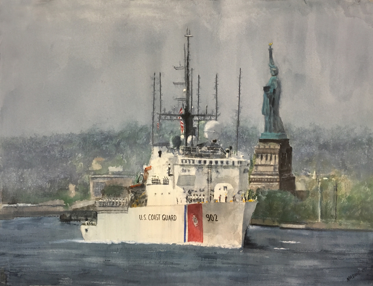 Protecting Liberty is an original watercolor painting based on my photograph during one of my many bicycle trips along the Hudson River. #140 Arches Rough Paper